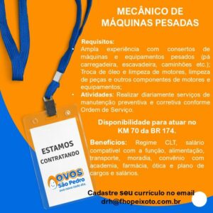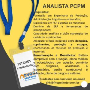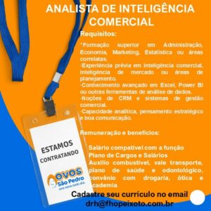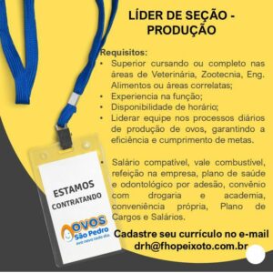 Confira as as 06 oportunidades de emprego oferecido pela empresa Ovos são pedro