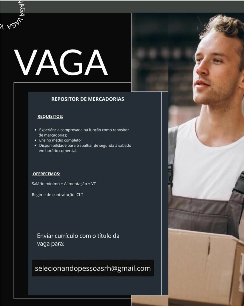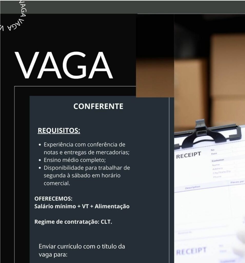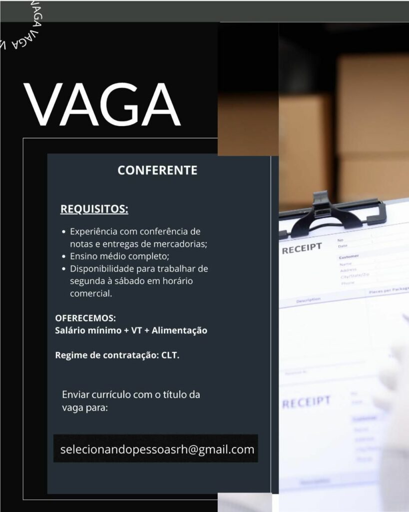Empresa está selecionando Conferente, Repositor de mercadorias; Envie seu currículo!