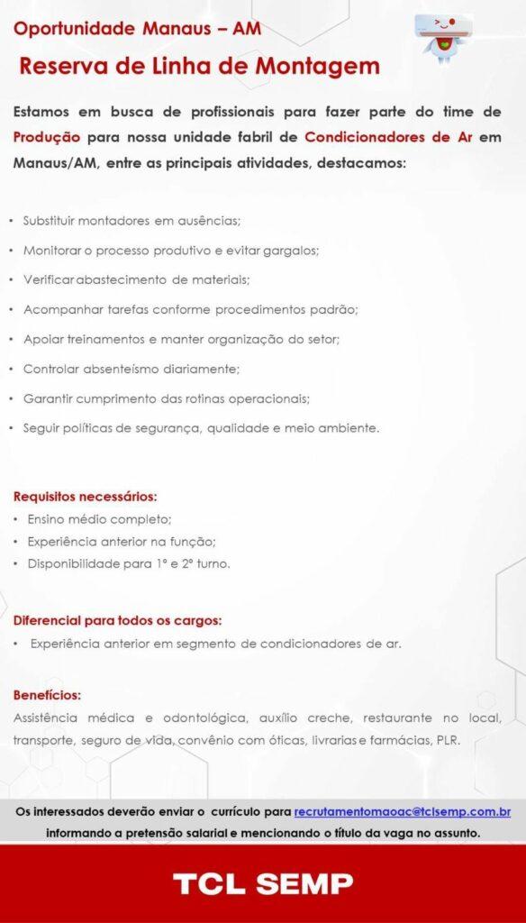 Empresa Semp tcl está selecionando para seu setor de produção; Saiba como se candidatar!