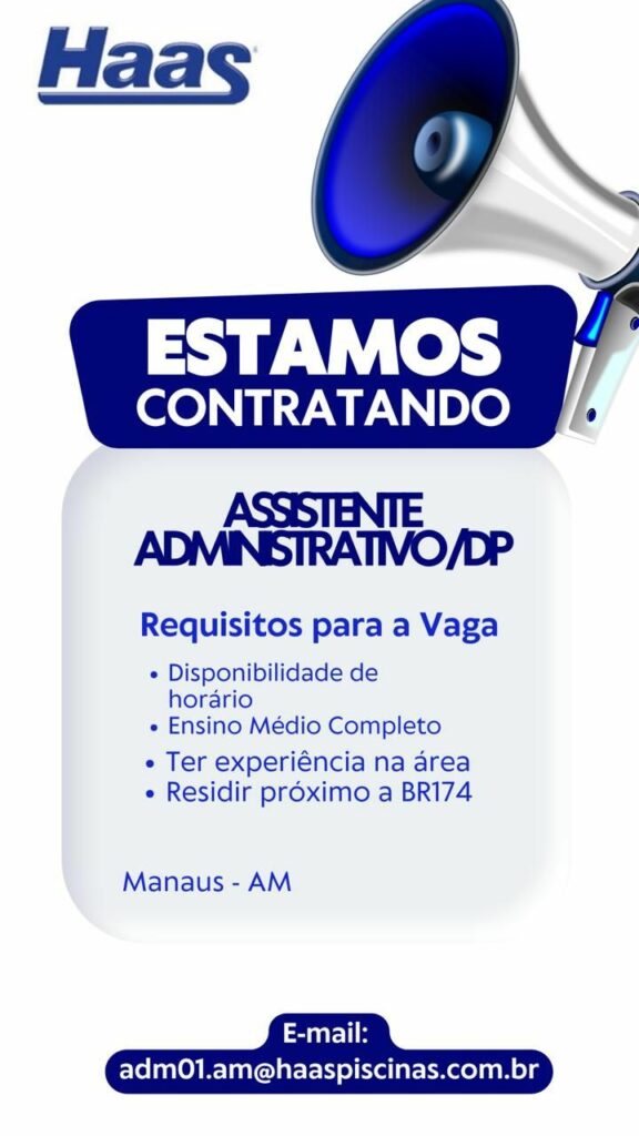 Haas piscinas está selecionando Assistente administrativo; Envie seu currículo!
