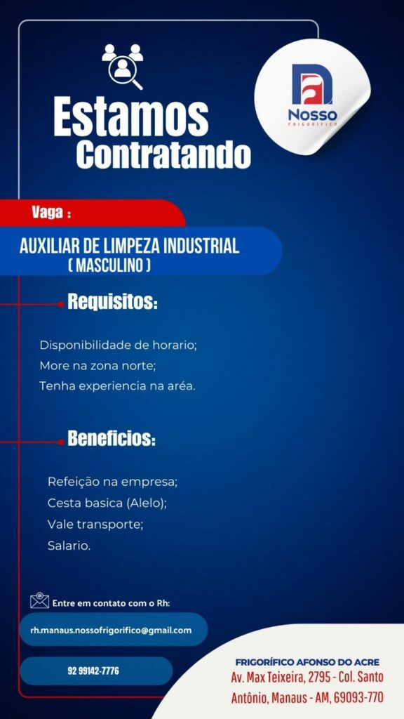 Rh está selecionando Auxiliar de limpeza industrial; Envie seu currículo!