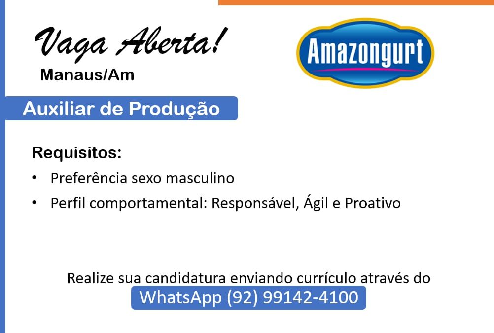 Amazongurt está selecionando Auxiliar de produção; Envie seu currículo!