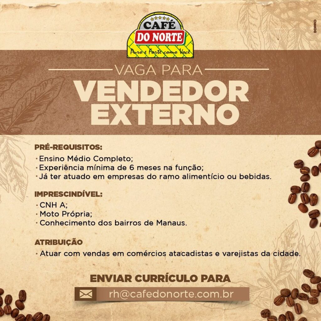Café do norte está selecionando Vendedor externo; Envie seu currículo!