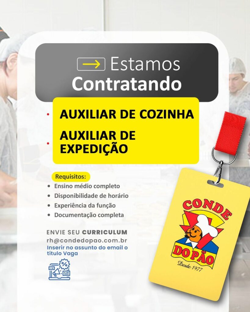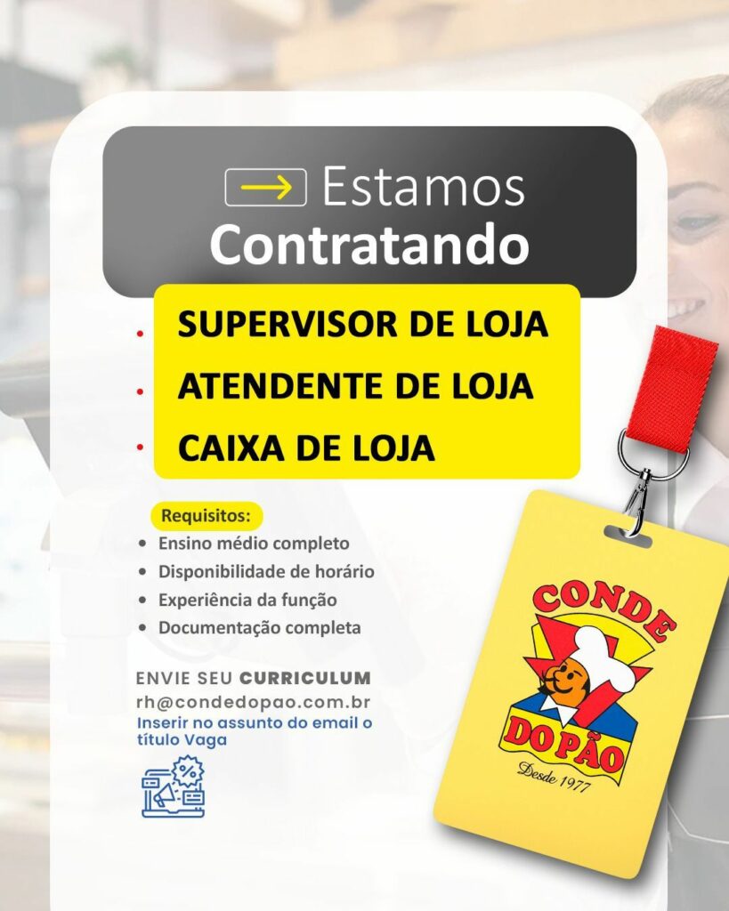 Confira as 12 oportunidades de emprego oferecido pela empresa Conde do pão