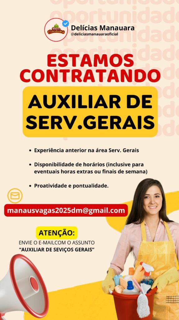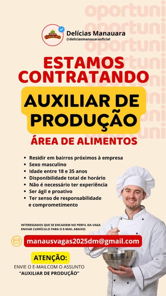 Delícias Manauara seleciona Auxiliar de produção, Auxiliar de serviços gerais; Envie seu currículo!
