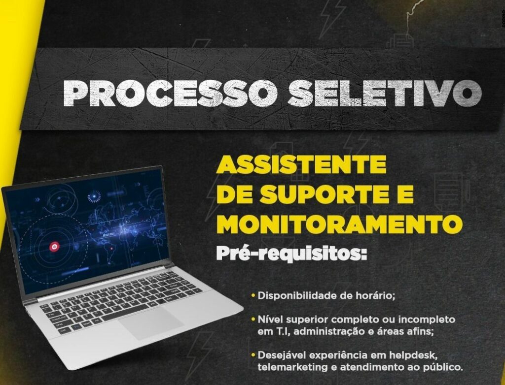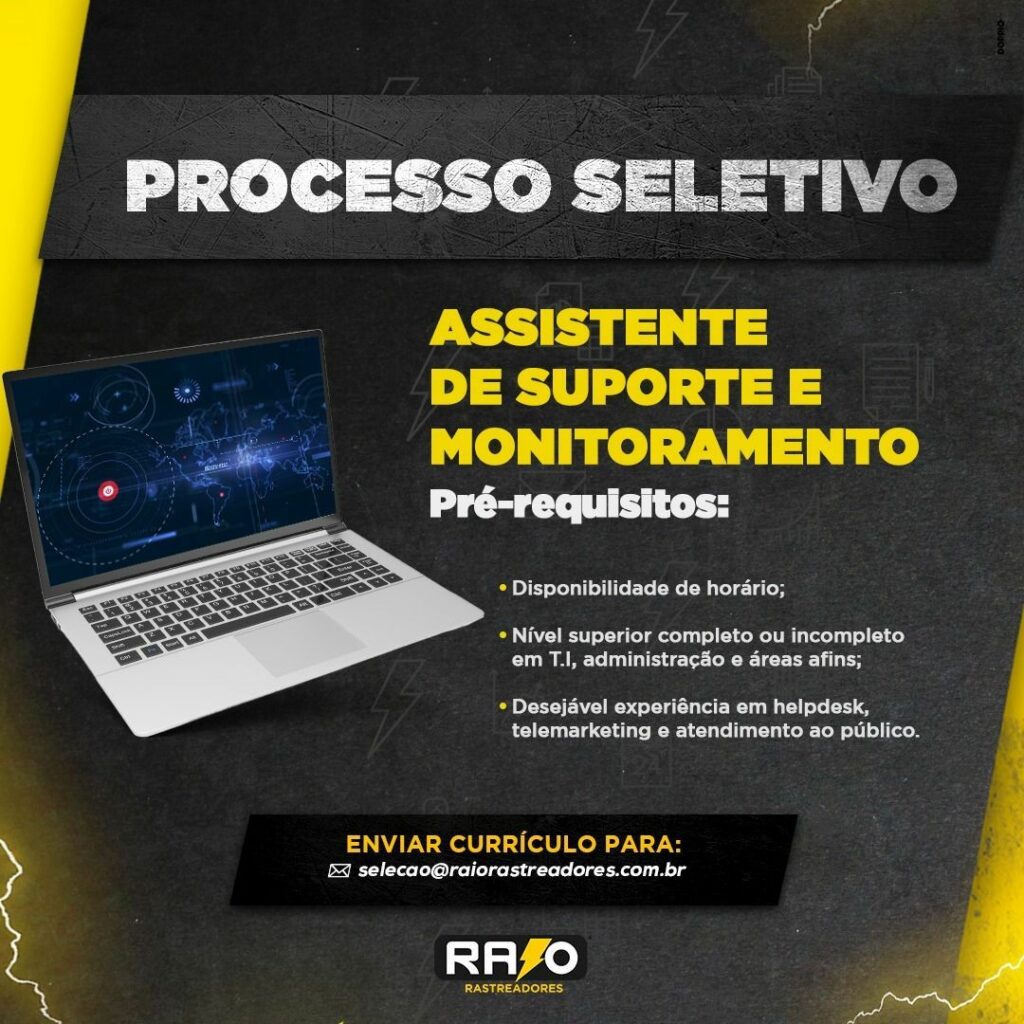 Empresa está selecionando Assistente de suporte e monitoramento; Envie seu currículo!