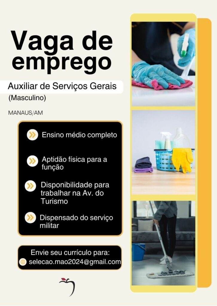Rh está selecionando Auxiliar de serviços gerais; Envie seu currículo!