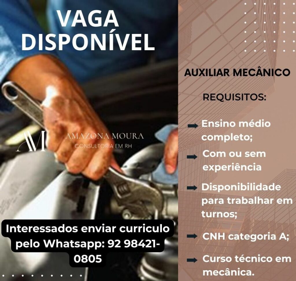 Empresa está selecionando Auxiliar mecânico; Envie seu currículo!