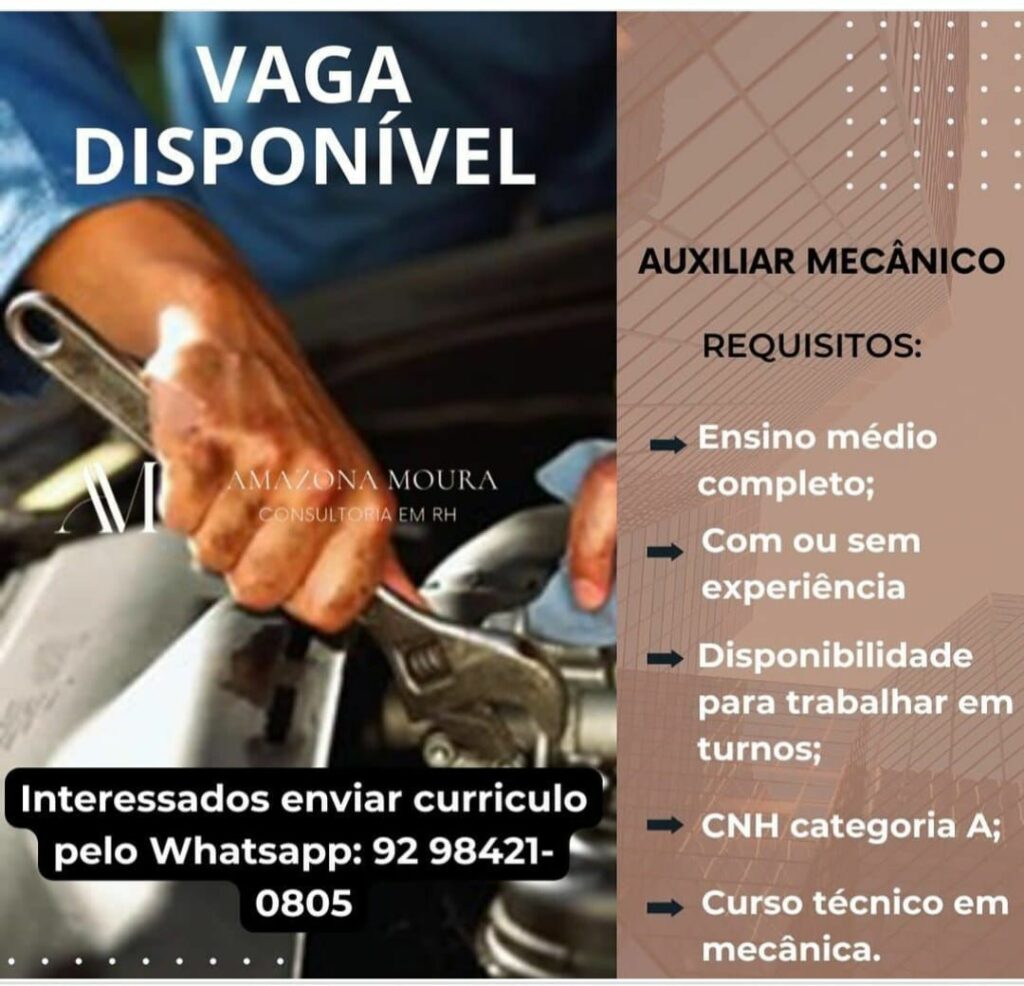 • Empresa está selecionando Auxiliar mecânico; Envie seu currículo!
