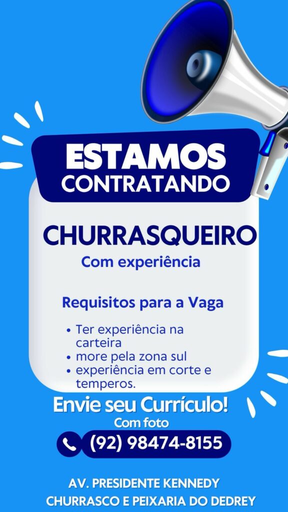 Empresa está selecionando Churrasqueiro; Envie seu currículo!