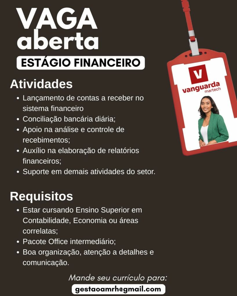 Empresa está selecionando Estágio financeiro; Envie seu currículo!