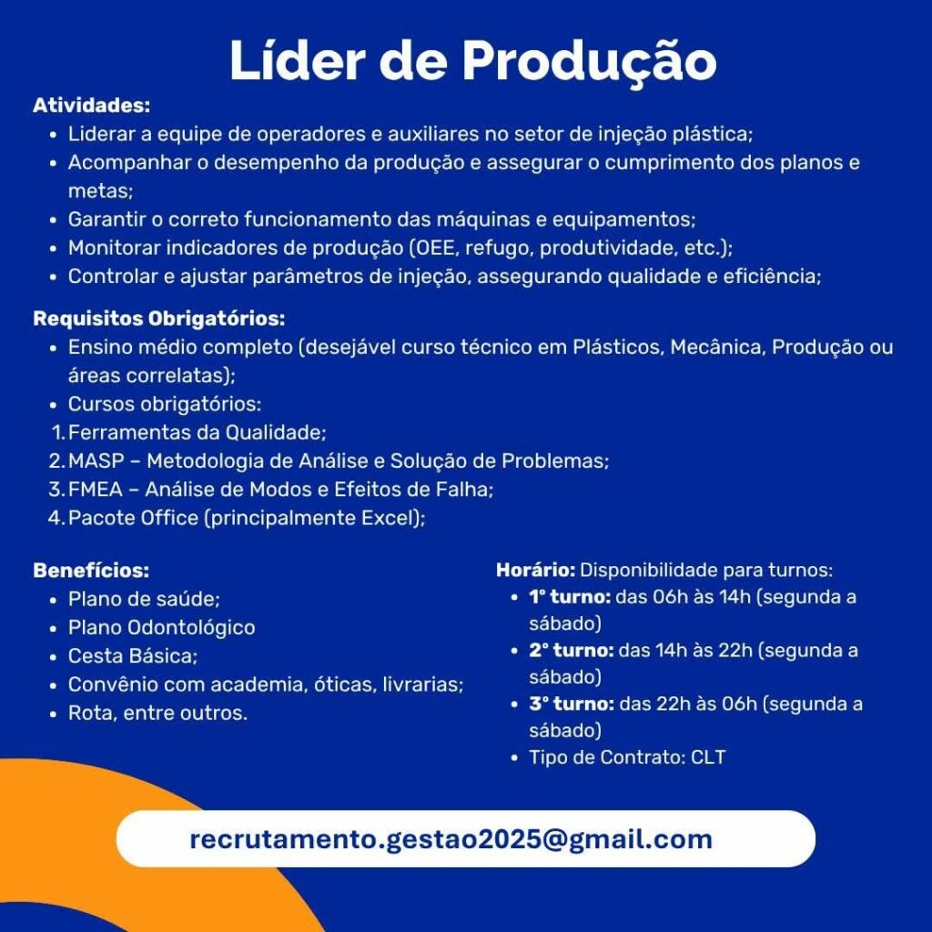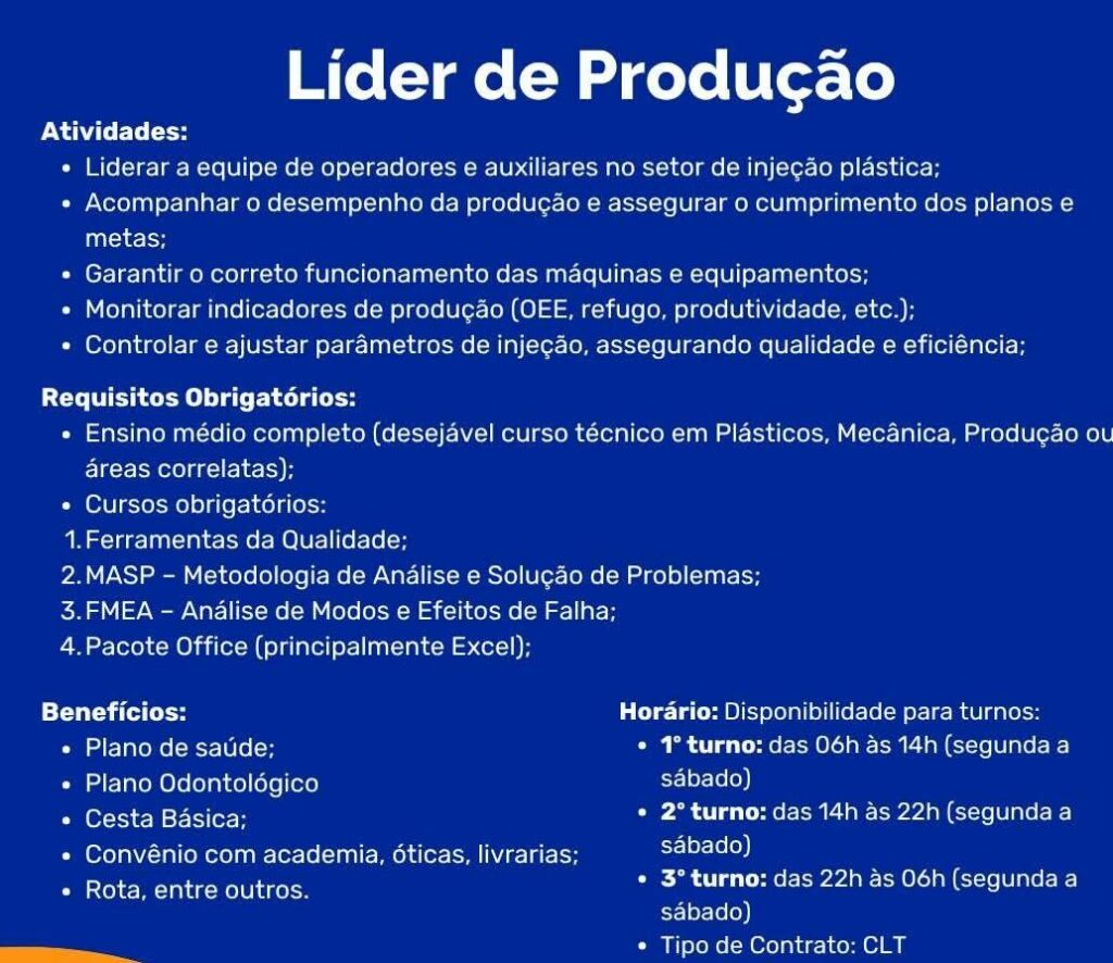 Empresa está selecionando Líder de produção; Envie seu currículo!
