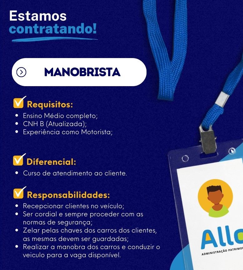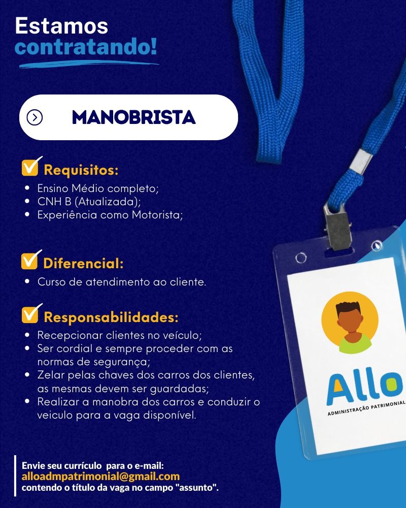Empresa está selecionando Manobrista; Envie seu currículo!