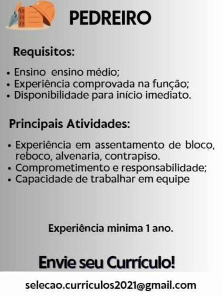 Empresa está selecionando Pedreiro; Envie seu currículo!