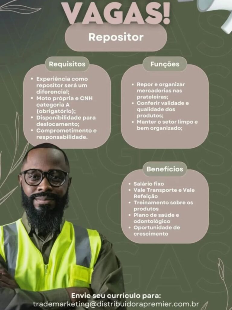 O processo seletivo para esta(s) vaga(s) não cobra absolutamente nada pela sua candidatura. Portanto, jamais aceite qualquer tipo de cobrança para cadastrar seu currículo.