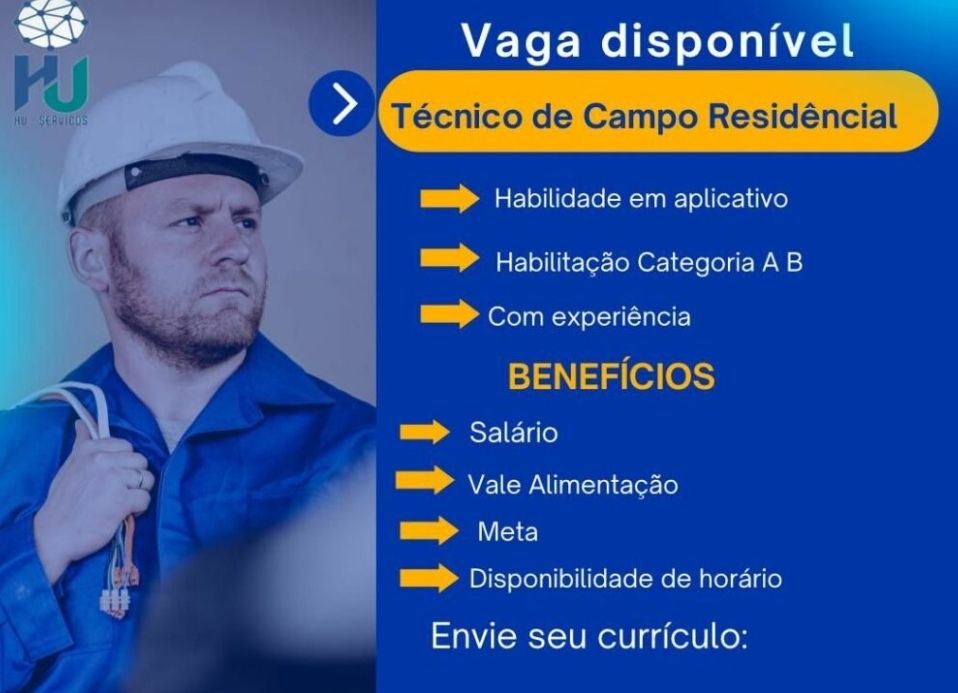 • Empresa está selecionando Técnico de campo residencial; Envie seu currículo!
