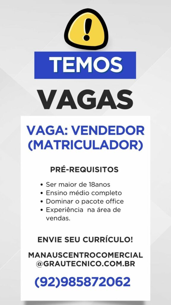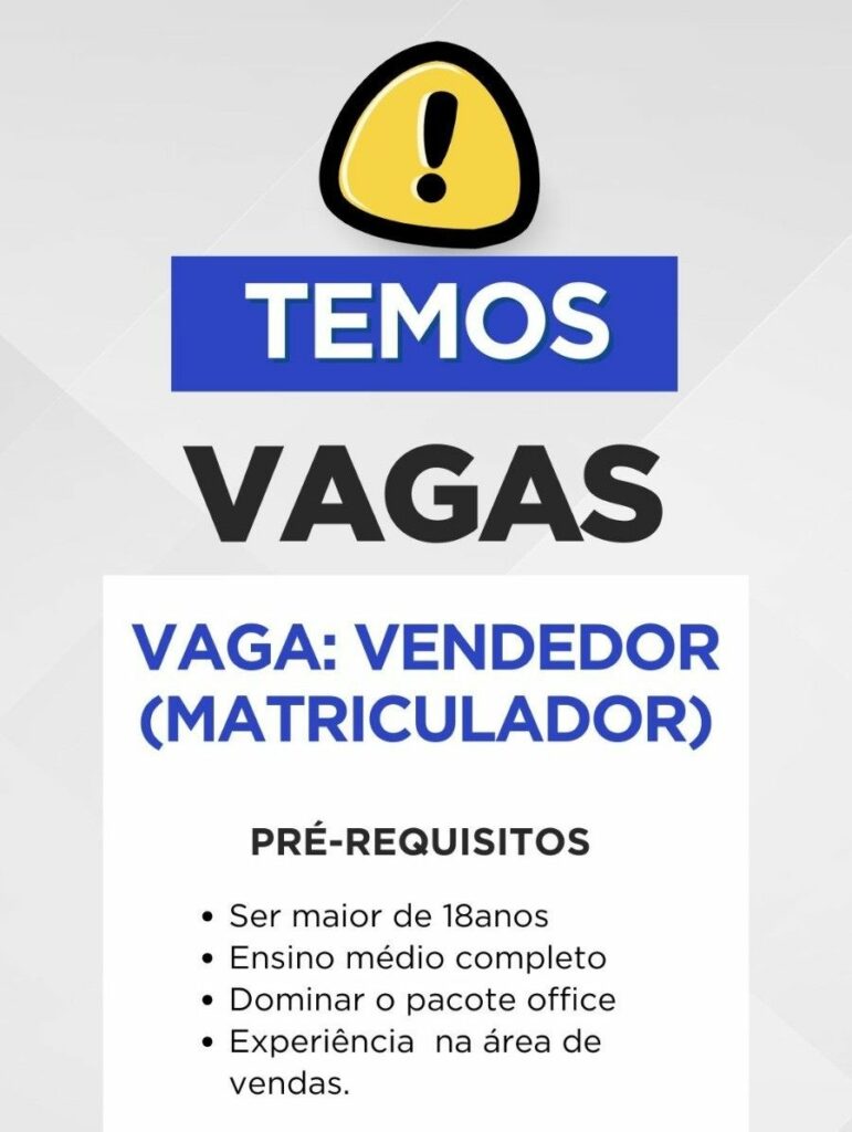 Empresa está selecionando Vendedor matriculador; Envie seu currículo!