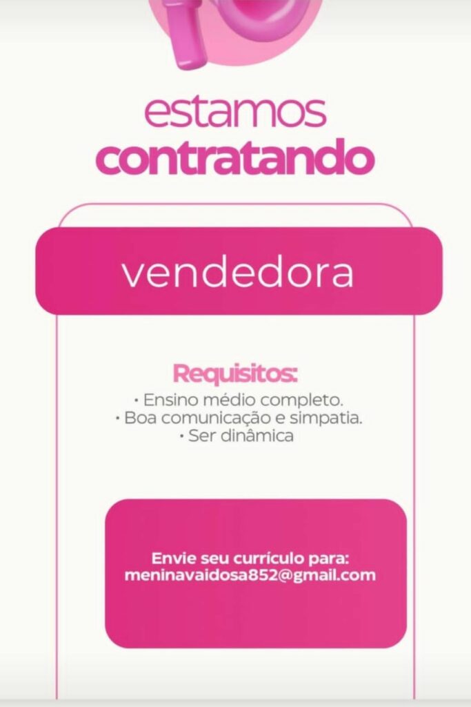 Empresa está selecionando Vendedora; Envie seu currículo!