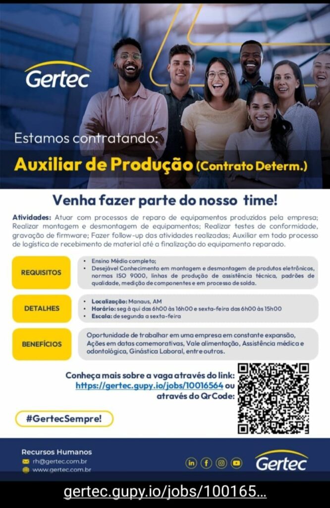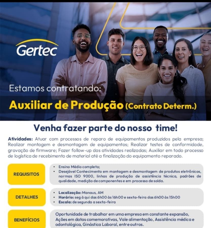 Gertec está selecionando Auxiliar de produção, Auxiliar de estoque, Aprendiz administrativo; Envie seu currículo!