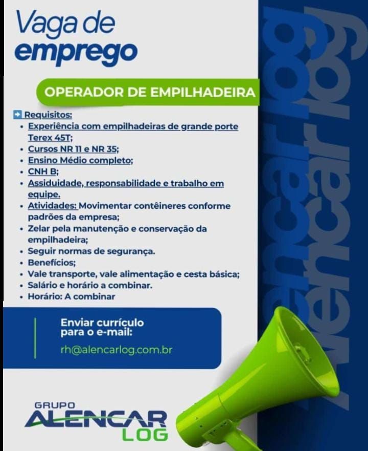 Grupo Alencar log seleciona Operador de empilhadeira; Envie seu currículo!
