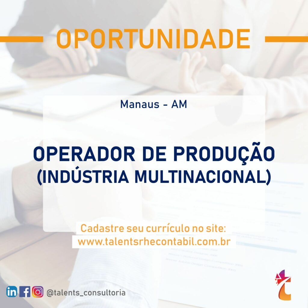 Indústria Multinacional está selecionando Operador de produção; Envie seu currículo!