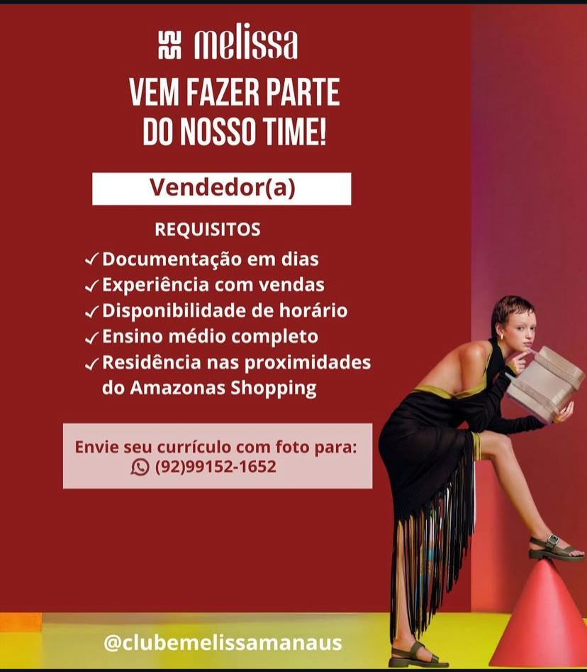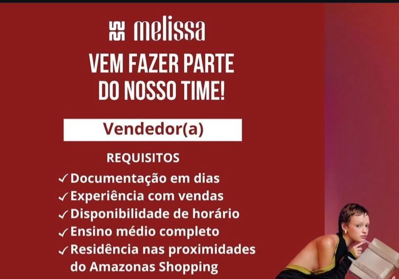 Melissa Manaus está selecionando Vendedora; Envie seu currículo!