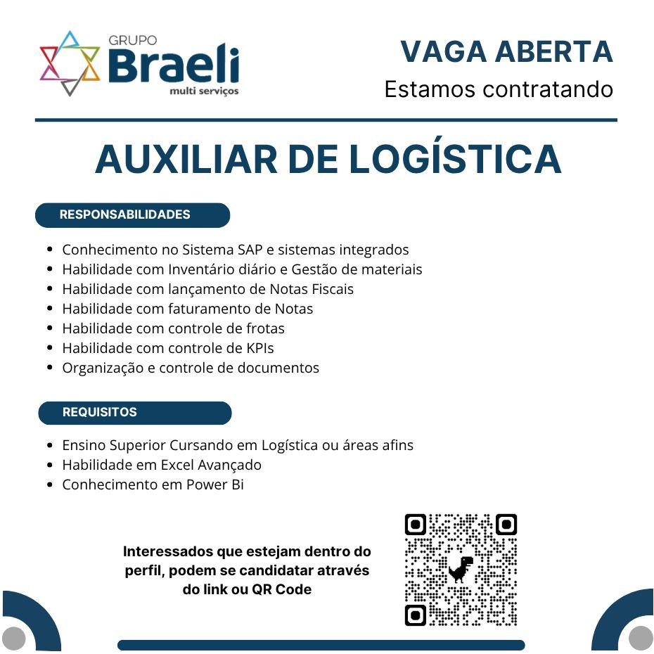 Rh está selecionando Auxiliar de logística; Envie seu currículo!