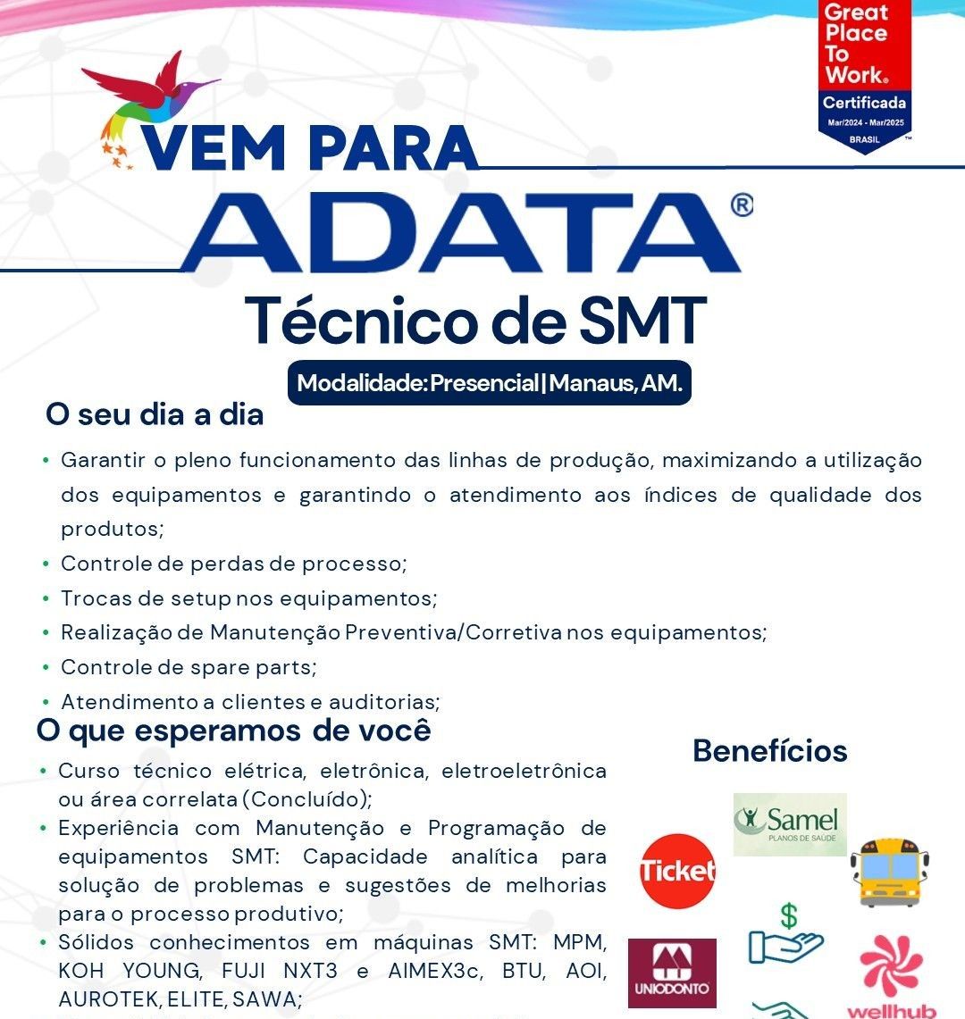 Empresa Adata está selecionando Técnico de smt; Envie seu currículo!