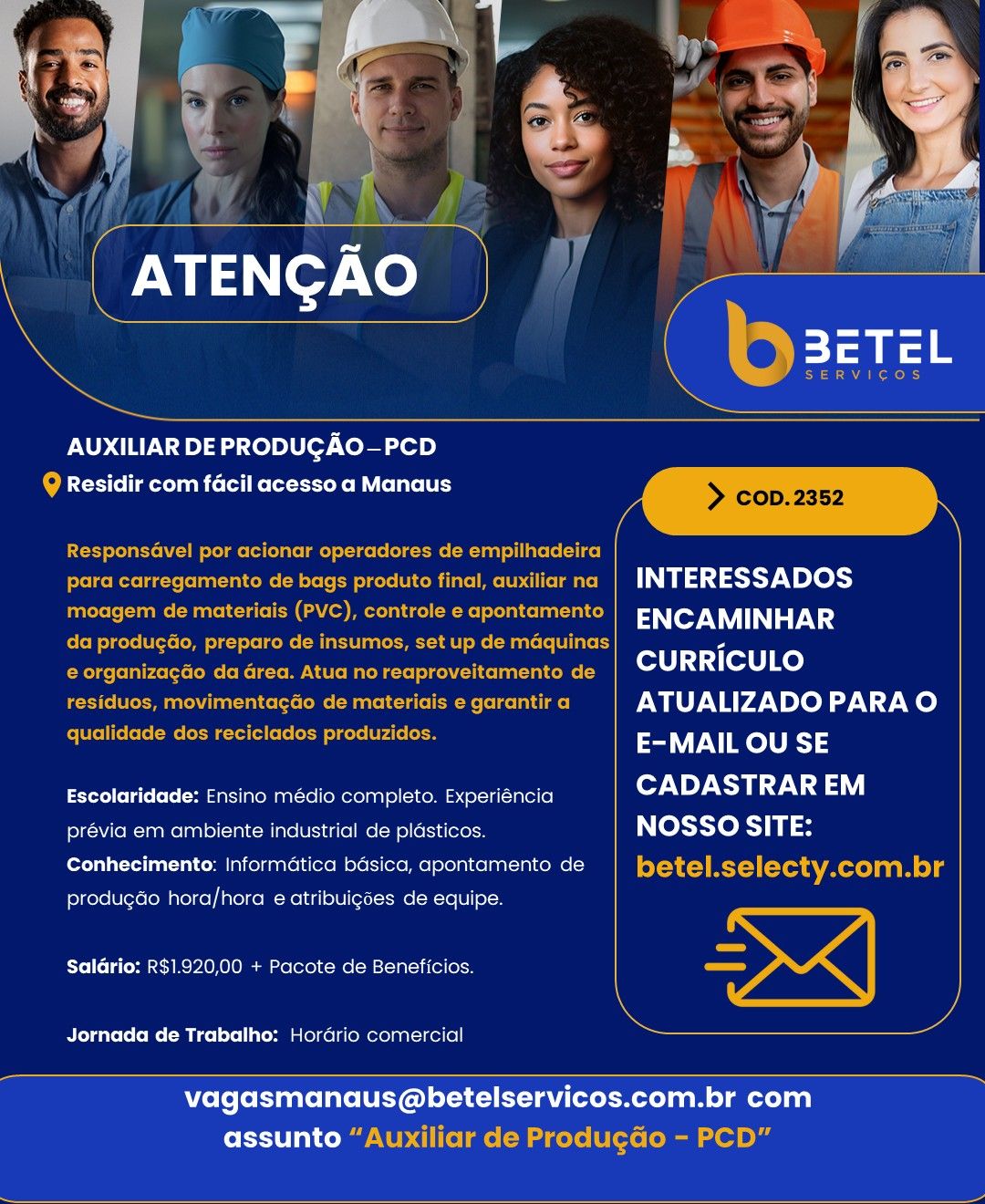 50 Vagas para Operador de Produção e 20 Vagas para Auxiliar de Reparos