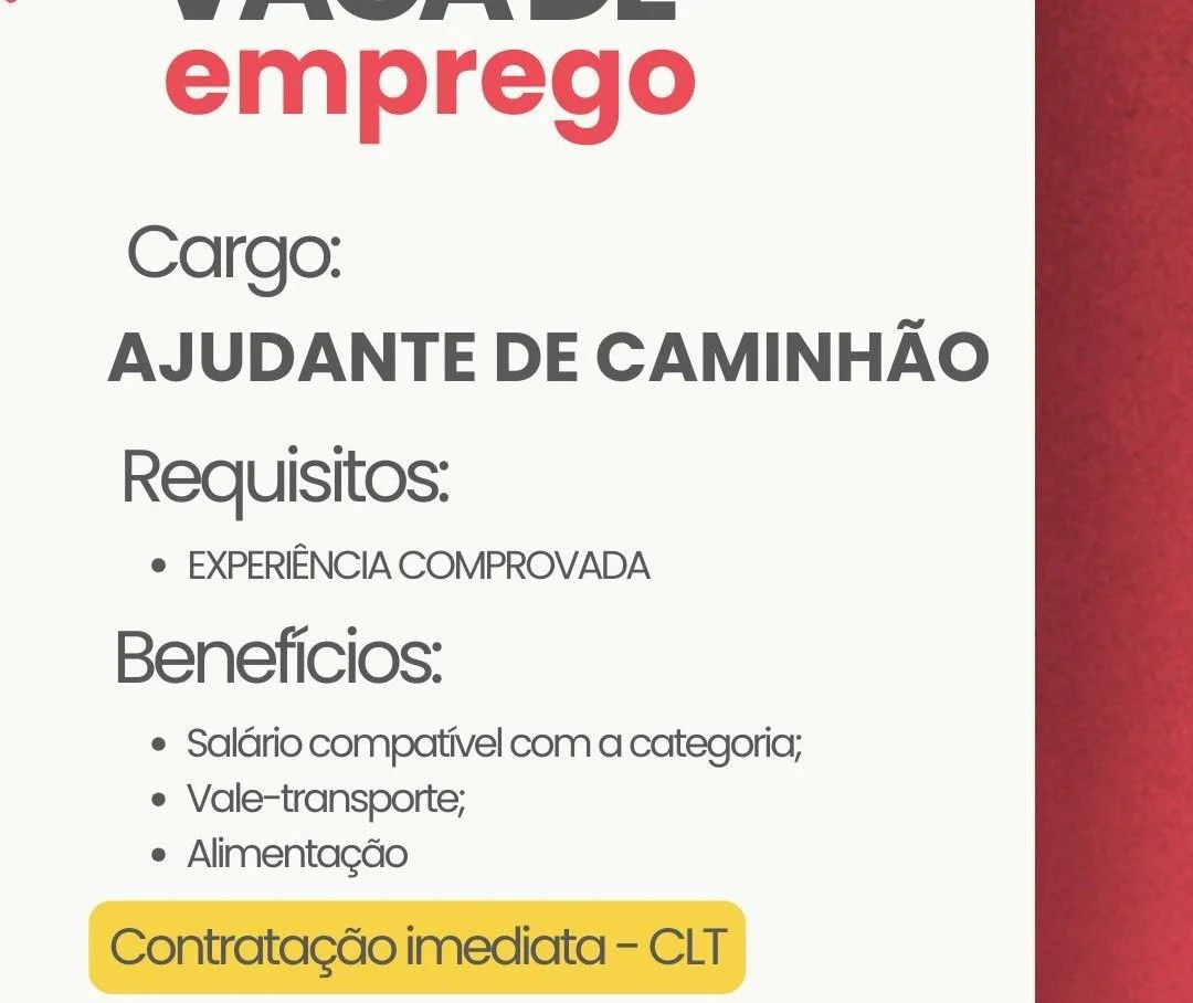 Rh está selecionando Auxiliar de operação sazonal; Envie seu currículo!